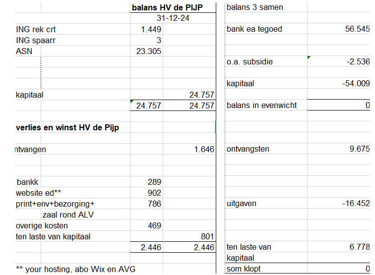 Jaarcijfers 2024 HBZ, HVP en HVC, beginbalans BAH 1-1-2025