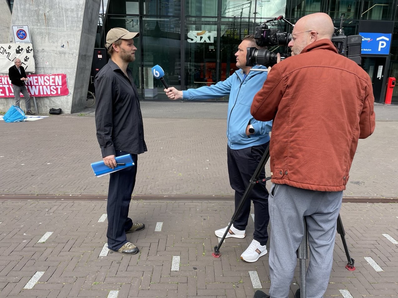 Abel Heijkamp van de Bond Precaire Woonvormen wordt geïnterviewd door SBS-6.