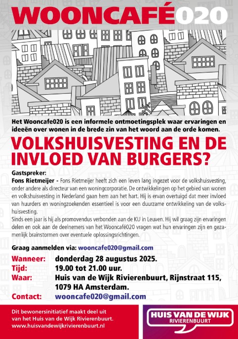 Voor u ligt alweer Nieuwsbrief 4 van de Bond Amsterdamse Huurders. Het is nu super vakantietijd. Doordat bestuursleden op vakantie zijn/zijn geweest/gaan staat veel zoals flitsacties en ledenwerving op een laag pitje. Toch is er een heel interessante Wooncafé donderdag 28 augustus. In het Rivierenhuis is maandag 8 september een bijeenkomst om te praten over hoe te wonen als je ouder bent.