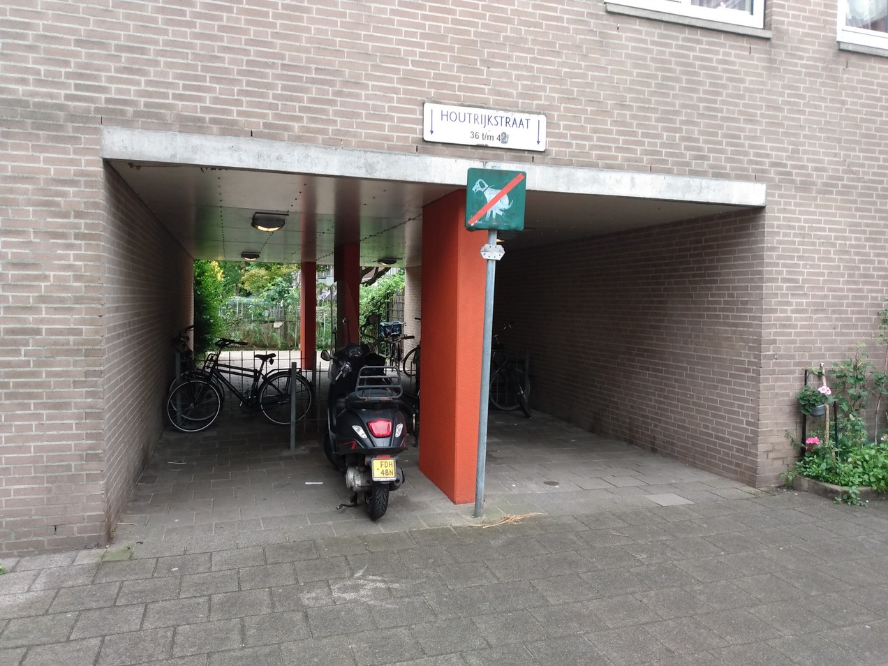 Vlakbij Houtrijkstraat 229 kent de straat een onderdoorgang naar een plein vol nutstuinen.        (Nutstuinen zijn tuinen met een overwegend functionele inrichting waarin voedsel, kruiden of andere gewassen verbouwd of opgekweekt worden.)