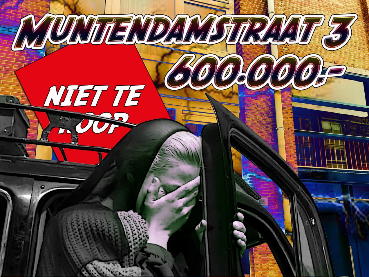 Zaterdag 1 februari voert actiegroep Niet Te Koop bij Muntendamstraat 3 flitsactie 203 tegen de doorgaande uitverkoop van sociale woningen. Ooit was hier de Amstelbrouwerij gevestigd. Die werd ergens 1984-85 gesloopt. Eind jaren 80 werden er woningen gebouwd door het Woningbedrijf, Eigen Haard en vooral Het Oosten.