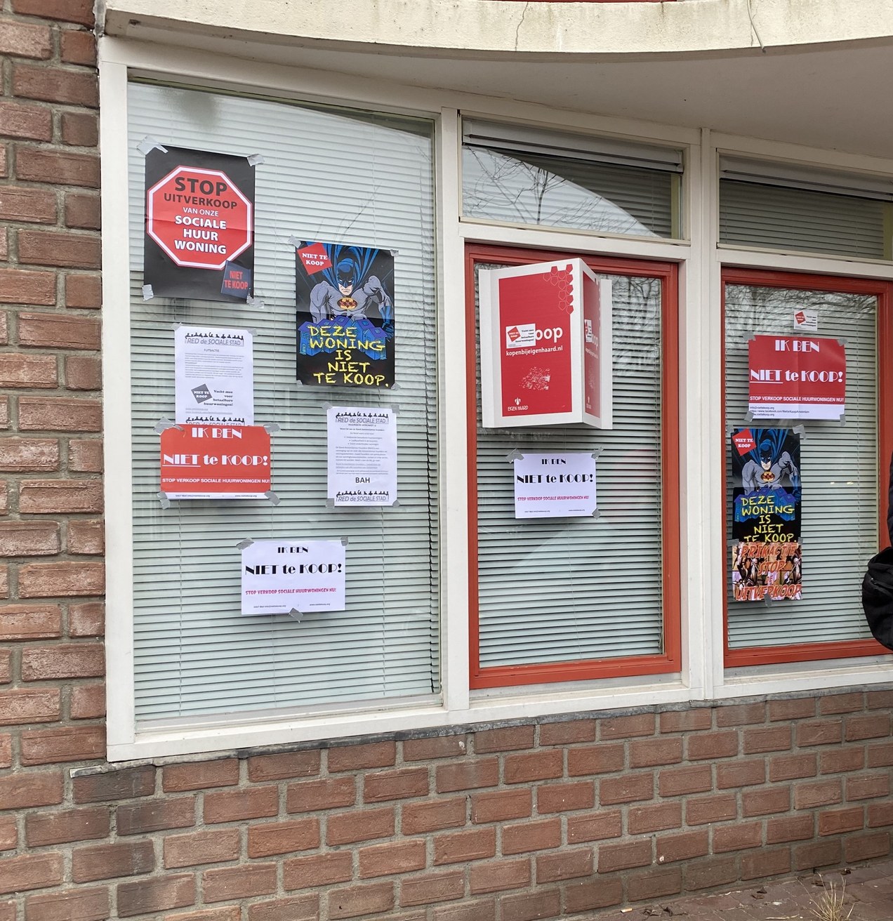 ![]() Het is op ons kleine wereldje een beetje raar gesteld.Want de ene mens neemt veel te grote happen. De een woont in een villa en de ander bij de belt. En die moet zich op z’n teentjes laten trappen. Affiche Kimbel Bouwman Helft nieuwbouw 1985 inmiddels verkocht Leilani Farha, VN-rapporteur housing zei ooit: ‘those who sustain cities are pushed out’ (degenen die de steden in stand houden worden verdreven). Ooit werden in 1985 woningen in het zuidwestelijk deel van Osdorp opgeleverd voor woningbouwvereniging Patrimonium. Aan de Louis Davids-, Fien de la Mar- en Prof. Casimirstraat kwamen 101 sociale woningen, 1 groepswoning en 23 HAT-eenheden. Op het terrein stonden ooit alleen populieren. Nu is er aan de Louis Davidsstraat nog een rij daarvan over. De schrijver van dit relaas heeft de woningen nog gebouwd zien worden. Huizen voor mensen, maar nu dus voor winst. De woning Louis Davidsstraat 6 is een kleine benedenwoning: 42m². Wordt aangeboden voor een vraagprijs van €290.000. Deze was ooit voor mensen met een indicatie voor begane grond of 1 hoog. De makelaar van uitponder Rochdale heeft in de tekst voor Funda nog staan: ‘toegankelijk voor mensen met een beperking en toegankelijk voor ouderen’. Pardon? Toegankelijk voor RIJKE ouderen! Voor arme ouderen is er misschien nog plek in de Osdorperhof. Als ze mazzel hebben tenminste, want de vergrijzing zal de komende tijd enorm toenemen. Ouderen gaan deze woning niet kopen. Ongetwijfeld koopt een rijk echtpaar dit object voor hun kind. Zo’n kind krijgt daarmee een enorme voorsprong op leeftijdgenoten met arme ouders. Aan alle vastgoed in Amsterdam wordt verdiend. Ook een woning in Tuinstad Osdorp. De wijk gentrificeert in rap tempo. Er wordt volop gebouwd bij het Osdorpplein en straks komt er ongetwijfeld een Meervaart in de Sloterplas. Inmiddels is zo’n beetje de helft van de nieuwbouw uit 1985 al verkocht. Hele plekken op de corporatiekaart zijn wit. Dat betekent dat er geen corporatiebezit meer is. Net zoals op andere plekken in de stad zullen er slechts eilandjes met sociale huurwoningen overblijven. De allermooiste woningen worden verkocht of geliberaliseerd. ![]() Louis Davidsstraat 6 ![]() Louis Davidsstraat. Op de achtergrond zijn enige bouwkranen die staan op het Osdorpplein te ontwaren. ![]() Eens was de hele Louis Davidsstraat corpo-bezit. In 2012 bezat Rochdale van de 72 woningen nog 86% (62 stuks), in 2024 was dat gezakt naar 57% (46 stuks). In dit tempo is men over 7 jaar over de helft. Een prima voorbeeld van een uitpondcomplex, al wordt het niet met zoveel woorden gezegd. Bij een uitpondcomplex worden ook benedenwoningen niet ontzien: verkopen! Sociale voorraad Rochdale in Amsterdam slinkt al jaren We worden zoet gehouden met het mantra van de corporaties: ‘Voor elke verkochte woning bouwen we met het gebeurde geld twee nieuwe’. Maar niet voor niets pleit actiegroep Niet Te Koop al jaren voor cijfers per corporatie. Kijken we naar de jaarcijfers van Rochdale de laatste vier jaar, dan zijn we elk jaar integendeel een afname van de sociale voorraad! Hoe worden we voor de gek gehouden! Afname in 2020: 113 2021: 123 2022: 133 2023: 39 Wat nou ‘voor elke verkochte woning bouwen we met het geld twee nieuwe’????? Zaterdag flitsactie 202 Niet Te Koop is ook in 2025 doorgegaan met flitsacties. We hebben het nodige bereikt. Met name dat de doorgaande verkoop van sociale huurwoningen door woningcorporaties voortdurend onder de aandacht wordt gebracht van publieke opinie, politiek en pers. Ook al wordt de indruk gewekt dat die verkoop aan banden is gelegd: dat is maar in beperkte mate het geval. Niet Te Koop eist een totale stop. Weer zien we een benedenwoning te koop gezet, geknipt voor huurders die naar beneden willen verhuizen en in aanmerking komen voor de gemeentelijke regeling Van Hoog Naar Laag. Weer een woning weg waardoor de buurt steeds meer onbetaalbaar wordt. Deze nieuwsbrief plus opnamen van de actie worden verstuurd naar politiek, pers, woningcorporaties en huurdersorganisaties. Onze acties houden het vuurtje brandend. Plaats van de flitsactie 202: Louis Davidsstraat 6 in Osdorp. Zaterdag 25 januari 15.00. De flitsactie zal ongeveer een half uur duren en bestaan uit 1. beflyeren van de buurt en voorbijgangers ; 2. het beplakken van de gevel en 3. het maken van opnames voor de publiciteit. Actiegroep Niet Te Koop zorgt voor spandoeken, affiches, stoepkrijt en wat niet meer. Maar u mag zelf natuurlijk ook materiaal meenemen. ![]() Opnamen van flitsactie 201 Verdienmodel corporaties onhoudbaar Zelfs het braafste jongetje van de klas, woningcorporatie Eigen Haard, is overgegaan tot verkoop van sociale huurwoningen die uitstekend passen in hun vastgoedportefeuille. In de Rivierenbuurt eerst recent Vechtstraat 133-1 en nu Ambonplein 24. Een benedenwoning, geknipt voor de gemeentelijke Van-Hoog-Naar-Laag regeling, voor de somma van €470.000. Tegen deze verkoop voerde Niet Te Koop afgelopen zaterdag 18 januari actie. Vennootschapsbelasting en winstbelasting Ook Eigen Haard loopt net als de andere corporaties tegen haar grenzen aan. Lees het interview met vertrekkend voorzitter van Aedes Martin van Rijn: ‘Bouw sociale huurwoningen zal stilvallen door belasting’. En het interview met de financieel directeur van Ymere, Marike Bonhof: ‘Als we woningen betaalbaar willen houden voor huurders, is het huidige model van corporaties onhoudbaar geworden.’ Corporaties worden al decennialang uitgeknepen. De verhuurdersheffing is dan wel afgeschaft, maar de vennootschaps- en winstbelasting drukken zwaar op de balans. Corporaties moeten niet dienen als cashcow, ze dienen financieel te worden gesteund middels premies en gratis grond. Onder voorwaarde dat ze veel meer onder democratische controle komen. Stop met dat gemodder: kapitaal bij elkaar harken middels verkoop! De timmerman die zijn hamer verkoopt om te kunnen timmeren……. ![]() ![]() ![]() |