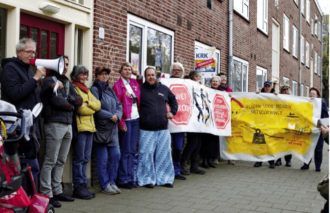 ![]() Er is vrijwel niets bekend over de geschiedenis van Ronald ‘The Ox’ Bloch. Wat we wel weten is dat hij stervend aan stralingsvergiftiging op zoek is naar wraak. Onlangs ontsnapte hij uit een zwaar beveiligde penitentiaire inrichting, samen met de dubieuze wetenschapper Dr. Karl Stragg, die een geestoverdrachtsapparaat gebruikte om ‘lichamen te ruilen’ met Bloch, verlangend naar controle over de bovenmenselijke kracht van The Ox. Hij is voor het laatst gezien in de buurt van Middenmeer-Zuid. Affiche Kimbel Bouwman Verduurzaming is simpel: vervang oudbouw door nieuwbouw! Voor de tweede opeenvolgende keer gaan we actievoeren tegen de schandalige verkoop door corporatie De Alliantie van de benedenwoning Johannes van der Waalsstraat 4, inmiddels onder voorbehoud verkocht. Een woning in een buurt waar zo weinig sociale huur is, een woning, geknipt voor de gemeentelijke regeling Van Hoog Naar Laag, een woning met achterstallig onderhoud en een laag energie-label (E). De enige reden die we kunnen bedenken om deze woning te koop aan te bieden is het vervangen van oudbouw door nieuwbouw. Het verduurzamen van de portefeuille zonder een kostbare operatie, van het gebeurde geld wordt immers de nieuwbouw gefinancierd. Rug Nee wij staan niet met de rug naar huurders verzekerde de directie-adviseur van de Alliantie de delegatie van actiegroep Niet Te Koop op 3-2-2026. De directeur wonen hield echter haar mond. Op de website van de Alliantie staat dat zei met haar gezin in Diemen woont: ‘Een hechte wijk met veel jonge gezinnen. In de buurt doen ze veel samen, zoals opruimen …’ WTF? Opruimen? Dat is de Alliantie aan het doen met de laatste sociale huurwoningen van de Dageraad in het tuinstadgedeelte van Middenmeer. Alvorens de jonge mensen kunnen kopen in Diemen moeten ze eerst vermogen opbouwen met een voormalige sociale huurwoning van de Alliantie. Na een paar jaar wonen wordt zo’n ‘object’ doorverhuurd of doorverkocht. Zoiets gebeurt nu met Johannes van de Waalsstraat nr 10. Daar is een vergunning aangevraagd voor verhuur. En de buurt? Die verandert sterk. Eigenaren bouwen uit en maken metershoge afrasteringen om hun vergrote tuin. Met een buurt heeft het niets meer te maken. Inmiddels is al 40% verkocht. En de verkoop gaat door… Wij blijven in actie! ![]() Johannes van der Waalsstraat 4-huis, een dag na de actie afgelopen zaterdag 7 februari ![]() Deze schutting vraagt om beklad te worden Tuinstad Middenmeer heeft de kenmerkende strokenbouw die ervoor zorgt dat elke woning licht, lucht en ruimte heeft. Heeft wel tot gevolg dat ook de achtertuinen zich bevinden aan de openbare weg. Regel is dat tuinen aan de openbare weg géén schuttingen mogen hebben hoger dan 1 meter. Hier op de Aragohof aan de andere kant van de Johannes van der Waalsstraat nummer 10 wordt de 2 meter overschreden. Met dit wanstaltige resultaat, wat vraagt om beklad te worden. ![]() Een verontwaardigde buur laat een deel van het oorspronkelijke hek zien dat enige maanden geleden door de koper achteloos aan de wegkant is gezet om te worden vervangen door een schutting van ruim 2 meter. Het open terrein gaat zo naar de Filistijnen. ![]() Nummer 12 staat leeg. Zal ook wel in de verkoop gaan…… ![]() Op 15 april 2023 stonden we met flitsactie 125 voor Johannes van der Waalsstraat 10-huis. Nu de anti-speculatietermijn is verstreken is direct een vergunning aangevraagd en verkregen voor vakantie-verhuur. Een bezwaarprocedure van buren loopt nog. ![]() Herhaling flitsactie 238 Niet Te Koop gaat door met haar flitsacties. De voortekenen zijn slecht. We zien dat de corporaties in een hoger tempo woningen zijn gaan verkopen. Ook het nieuwe kabinet is voorstander van verkoop om nieuwbouw en verduurzaming te financieren. De sociale huur zit in de verdrukking. Het is absurd dat de corporaties het onrendabele gedeelte van hun investeringen moeten financieren met verkoop, waarbij hele wijken gentrificeren. Twee stappen vooruit, twee stappen achteruit. We moeten die absurditeit van de doorgaande verkoop van sociale huurwoningen voortdurend onder de aandacht blijven brengen van publieke opinie, politiek en pers. Niet Te Koop eist een totale stop. Weer zien we een woning, geknipt voor de gemeentelijke regeling Van Hoog Naar Laag voor de leeuwen gegooid worden. Deze nieuwsbrief wordt verstuurd naar politiek, pers, woningcorporaties en huurdersorganisaties. Plaats van deze tweede flitsactie 238 wordt dus weer Johannes van der Waalsstraat 4-huis in de Watergraafsmeer, zaterdag 14 februari, aanvang 15.00. De flitsactie zal ongeveer een half uur duren en bestaan uit 1. beflyeren van de buurt en voorbijgangers ; 2. het beplakken van de woning en 3. het maken van opnames voor de publiciteit. KOMT ALLEN! ![]() Opname flitsactie 238 Plaats van de eerste flitsactie 238 voor Johannes van der Waalsstraat 4 was afgelopen zaterdag 7 februari. Op een steenworp afstand van het hoofdkantoor Amsterdam van vastgoedonderneming De Alliantie. Het lijkt wel of De Alliantie geen corporatiewoningen om haar kantoor duldt, het weinige bezit wat zij hier heeft (bijvoorbeeld ook aan de Linnaeuskade) wordt prijsgegeven aan de markt. ![]() Actie 7 februari |
